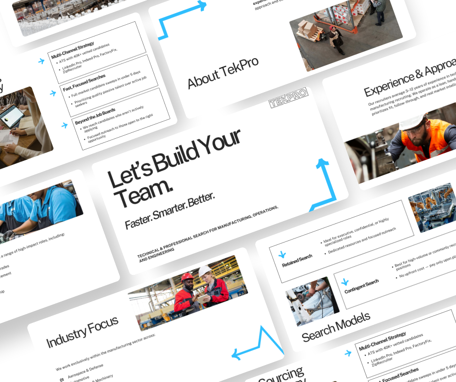 Tekpro Staffing is a U.S.-based staffing firm specializing in placing talent across the manufacturing sector. With decades of industry experience, Tekpro had built a strong reputation through word-of-mouth and relationships but lacked a digital foundation to scale that success.